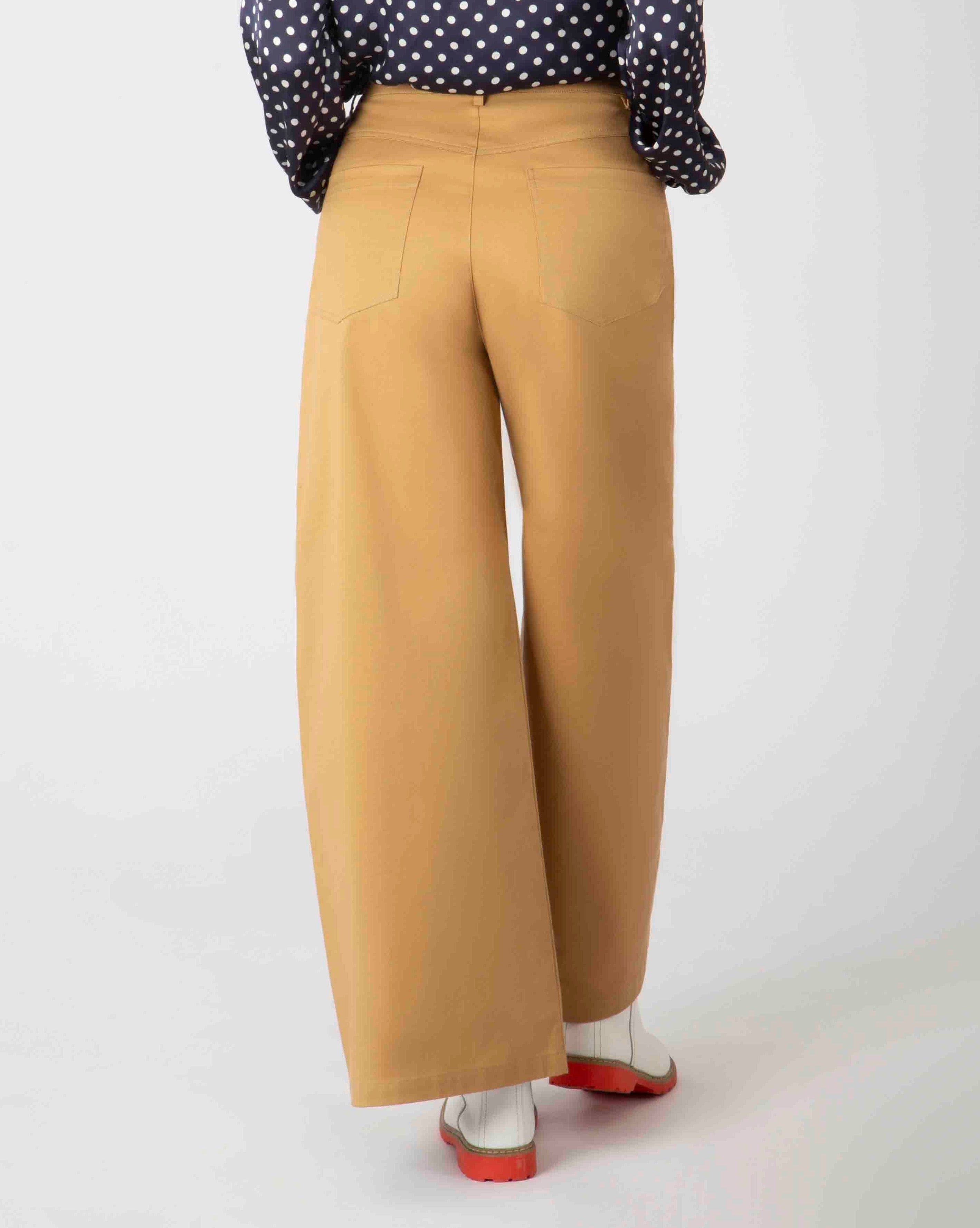 Confeccionado en algodón dril de tono camel claro, este pantalón de silueta amplia destaca por su bordado artístico de hojas y libélulas, distribuidos cuidadosamente sobre ambas botas para lograr un efecto visual equilibrado y natural. Incluye pretina con botón, bolsillos funcionales delanteros y traseros, y un diseño que combina originalidad y comodidad. Ideal para un look fresco, divertido y casual